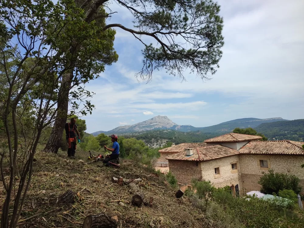 Côme dans les arbres a réalisé un chantier de débroussaillage forestier dans le cadre d'une protection contre les incendies sur la commune d'Aix-en-Provence en collaboration avec l'entreprise Paul et les arbres.