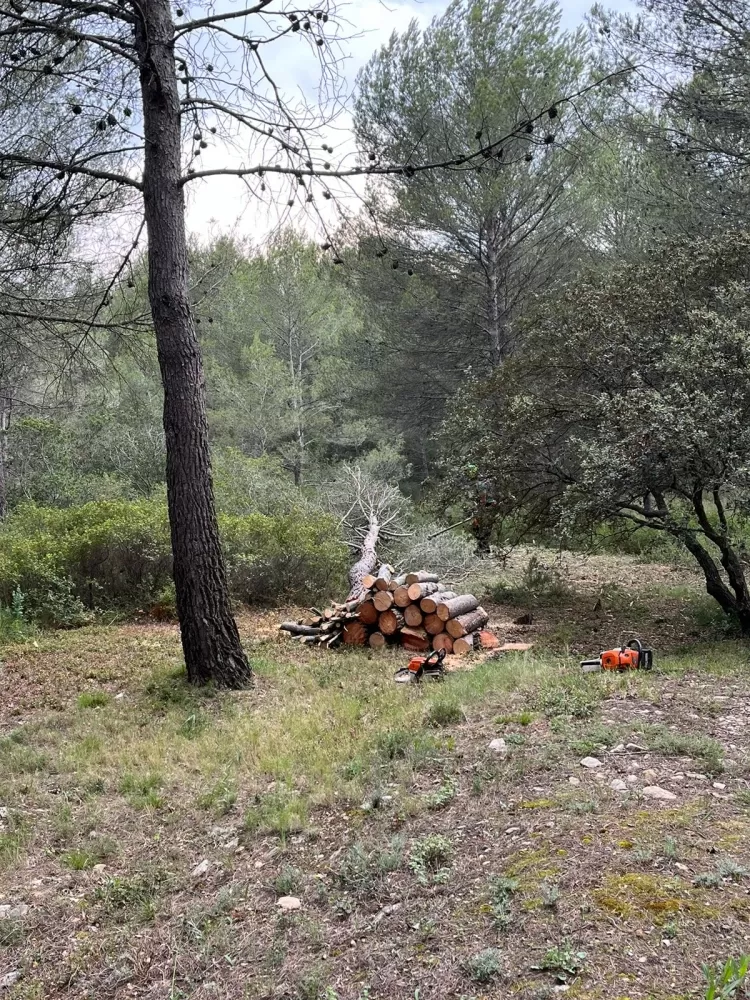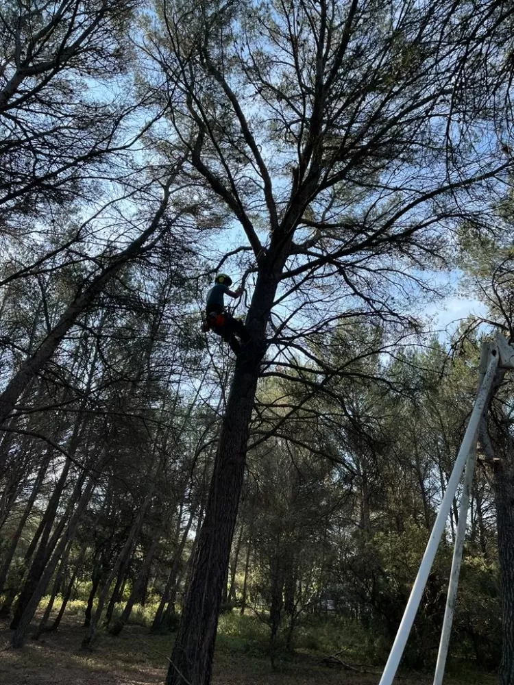 Côme dans les arbres a réalisé des élagage de pin (retrait du bois mort, mise en sécurité) et des abattages dans le cadre de la protection contre les incendies à Lambesc.